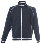– Polsini e fondo maglia in costina elasticizzata con riga in contrasto